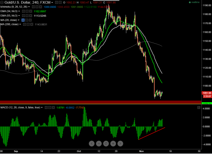 - Gold has recovered till $1095 after making a low of $1085. It is currently trading at $1092.