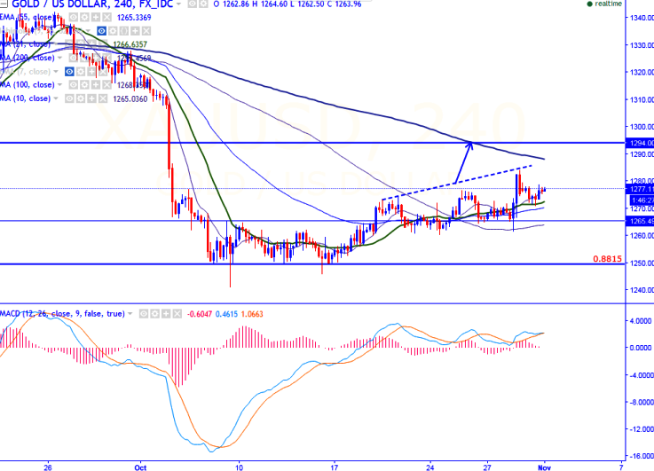 - On the higher side, major resistance around $1285 and any break above targets $1293 (55- day EMA)/$1300.