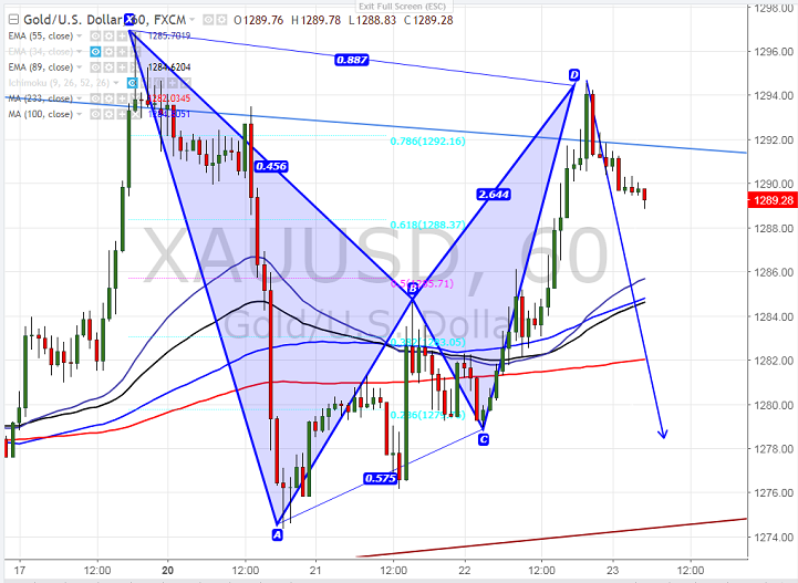 - The yellow metals has formed Bearish Bat pattern and any major bullishness can be seen only above $1297. Any break above will take the gold to next level till $1300/$1309 in the short term.