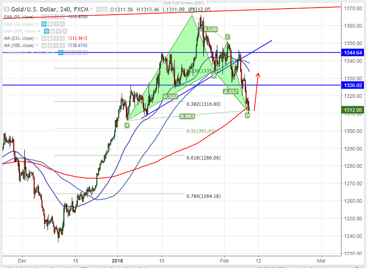 - The yellow metal formed potential Bullish bat pattern and potential reversal zone only below $1305.