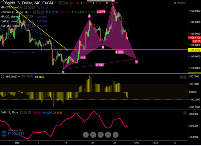 - Gold has decline till $1124 after making a high of $1156. It is currently trading @ $1126.