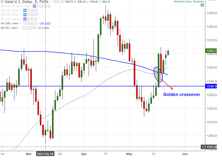 - In the daily chart the yellow metal has formed golden cross over 50-day moving average rose above its 200-day moving average and this confirms bullish signal.