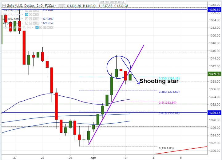 - On the lower side, near term support is around $1335.69 (38.2% fib) and any break below will drag the yellow metal down till $1330/$1324/$1320.