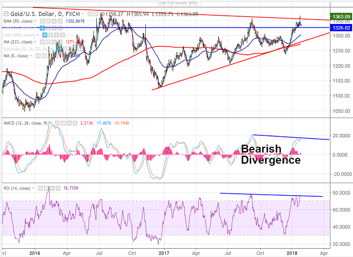 - Chart Pattern – Bearish Divergence (RSI and MACD).