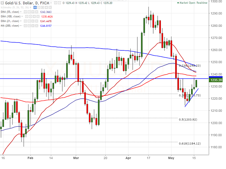 - Technically gold is facing strong support at $1214 (May 9th 2017 low) and any break below will drag the precious metal till $1208 (50% retracement of $1122 and $1295)/$1200/$1195. It should break below $1195 (Mar 10th 2017 low) for further weakness.