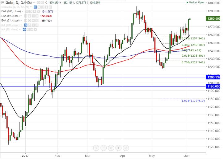 - Gold hits highest in six weeks as U.S jobs data came weaker than expected. The yellow metal broken major resistance of $1274 high made on May 31st 2017. The yellow metal jumped almost $20 yesterday and is currently trading around $1280.