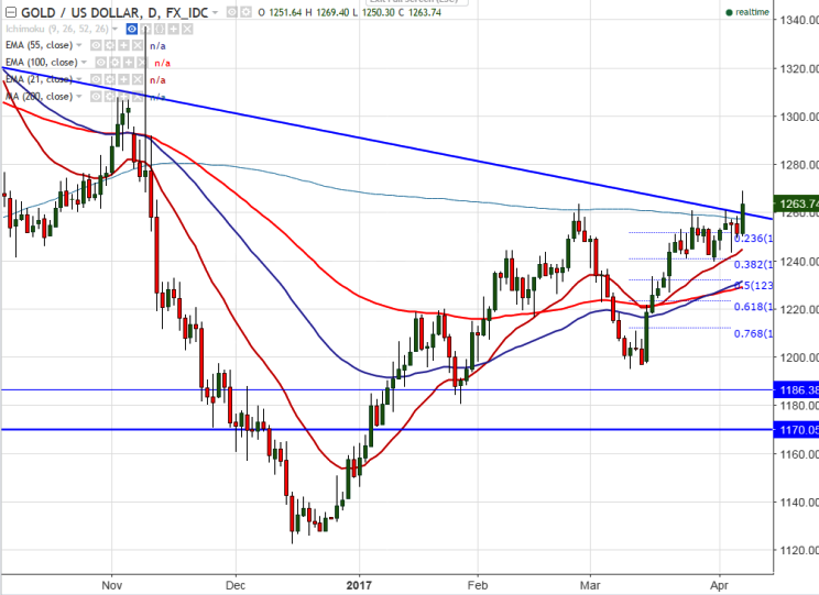 - Gold hits five month high after U.S military launched missile attack against Syrian base. The yellow metal broken the high of $1261.25 the high formed on Apr 4th 2017 and jumped till $1263.50.