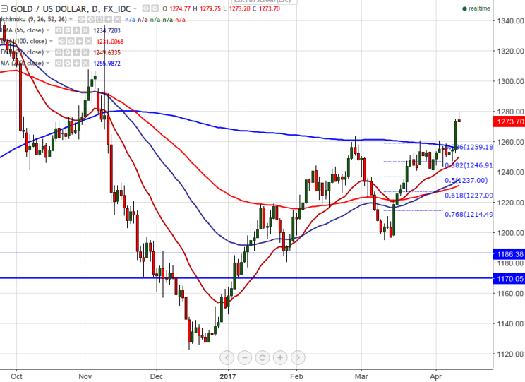- Gold hits fresh five month high of $1279 yesterday on account of geopolitical tension in Syria and North Korea.