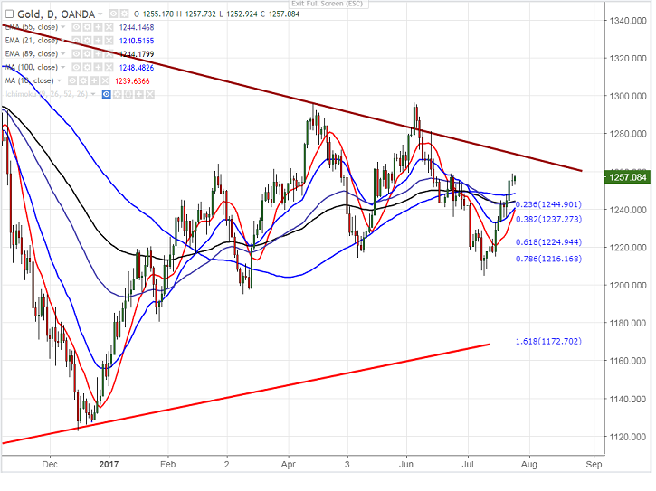 - Technically gold has closed well above 100- day MA ($1248) for the past two days and confirms minor bullishness.
