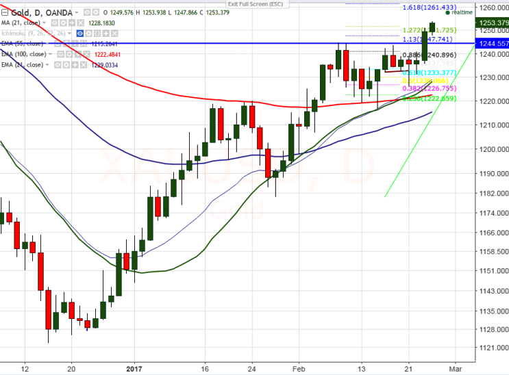 - Gold major resistance is around $1252 (127% retracement of $1244.80 and $1216.75) and any break above targets $1262 (200-day MA)/ $1278 (61.8% retracement of $1375 and $1122) is likely.