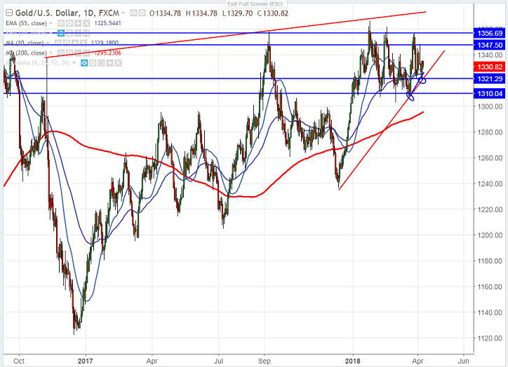 - Gold has shown a good $15 recovery on Friday as US jobs data came slightly weaker than expected. The yellow metal hits high of $1335.29 from the low of $1319.40. The slight decline in yellow metal is considered as buying opportunity by traders as trade war tension between US and China increases demand for safe haven. US economy has added 103K jobs for the month of Mar compared to forecast of 193K.