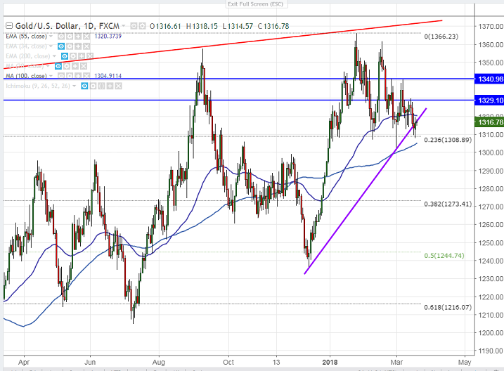 - The near term resistance is around $1321 (55- day MA) and any break above will take the yellow metal till $1324 (20- day MA). Short term bullish continuation only above $1330.