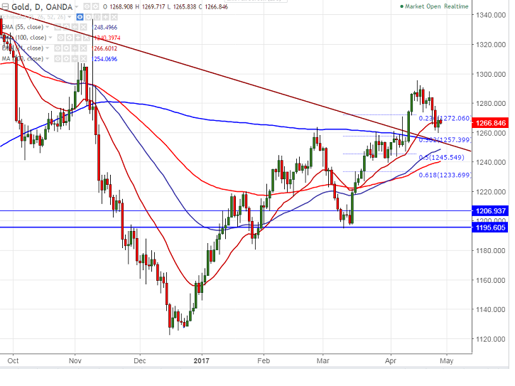 - On the higher side, near term resistance is around $1273 (23.6% retracement of $1295 and $1259) and any break above targets $1284/ $1295 (Apr 17th high)/$1300/$1318 (161.8% retracement of $1295 and $1265).