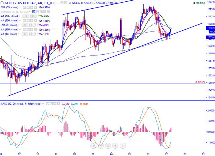- On the higher side, major resistance is around $1270.28 (Hourly Kijun-Sen) and any break above targets $1280/$1294.80.