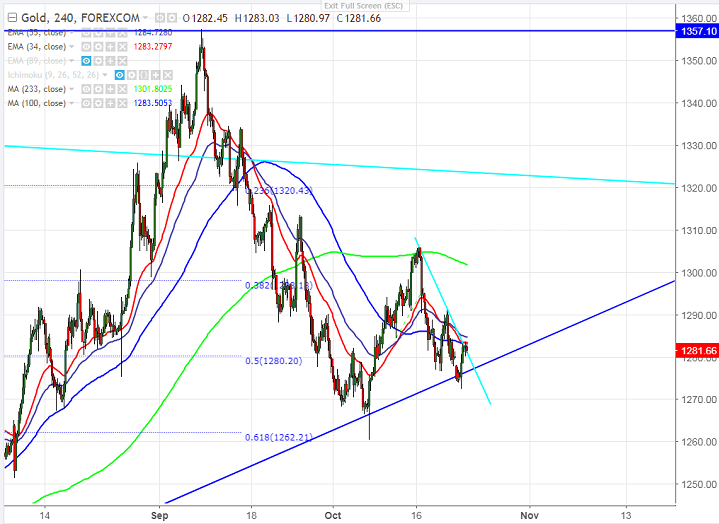 - Technically gold is facing major resistance around $1284 (55- 4H EMA) and any break above will take the yellow metal till $1291/$1300.