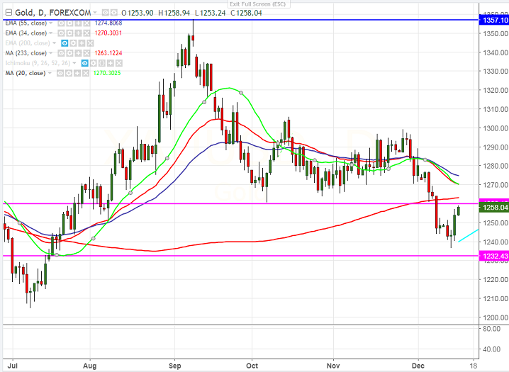 - Gold recovered sharply almost $17 from the low of $1240 made yesterday after US Fed monetary policy. The US dollar index tumbled almost 70 pips from the yesterday high of 94.11. The yellow metal jumped till $1258.94. It is currently trading around $1258.04.