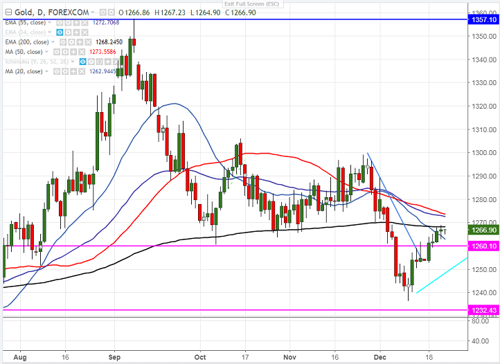 - On the higher side, near term resistance is around $1268 (200- day EMA) and any break above will take the yellow metal to next level till $1273 (55-day EMA)/$1279.50.