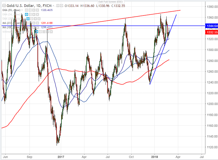 - On the lower side, any break below $1318 (55- day EMA) will drag the gold down till 1316 (38.2% fibo)/$1309. Bearish continuation only if it breaks below $1305 level. The near term support is around $1330.