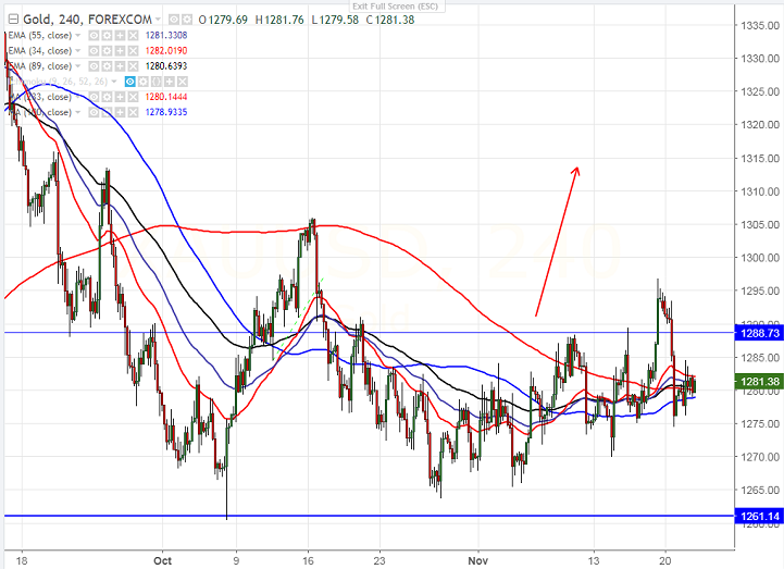 - Gold has shown a minor jump till $1284 after a massive selling on Nov 20th 2017 on account of slight weakness in US dollar and Europe political uncertainty. The yellow metal declined almost $20 from the previous week high and is currently trading around $1282.