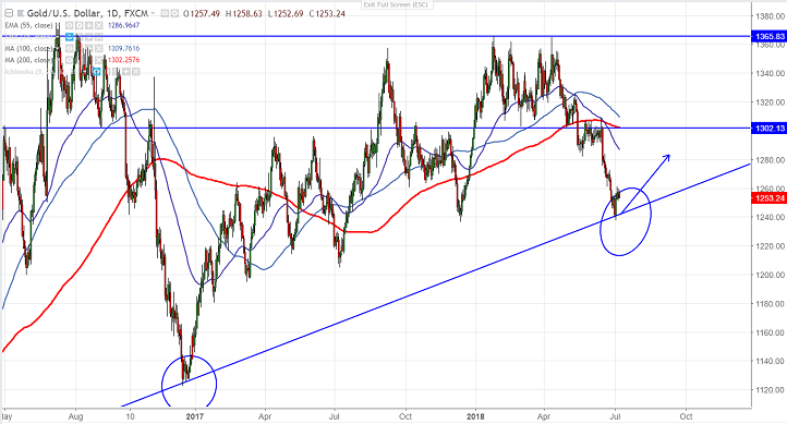- The near term resistance is around $1260 and any break above will take the yellow metal till $1270/$1275 (23.6% fib).