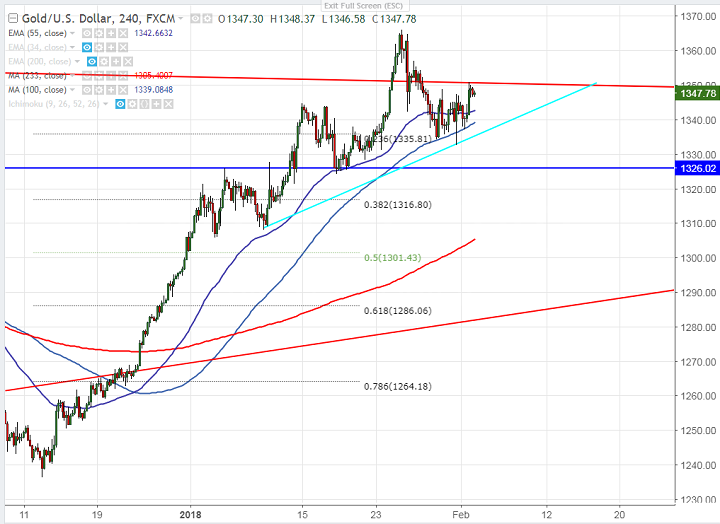 - Gold has shown a good jump of almost $13 yesterday from low of $1337. The yellow metal is consolidating for the past 12 hours between $1346.80 and $1350.80. US dollar index is still trading weak after making a high of 89.64. Gold is currently trading around $1347.23.