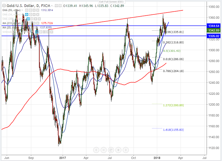 - The yellow metal has recovered after showing a minor dip below 20 –day MA. Any further weakness can be seen only if it closes below 20 –day MA at $1336 for two consecutive days. Any close below will drag the pair till $1320/$1311 (55- day EMA) is possible.