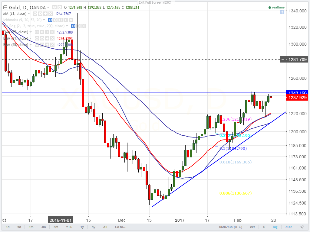 - Gold major resistance is around $1245(200- WMA) and any break above targets $1262 (200-day MA)/ $1278 (61.8% retracement of $1375 and $1122) is likely.