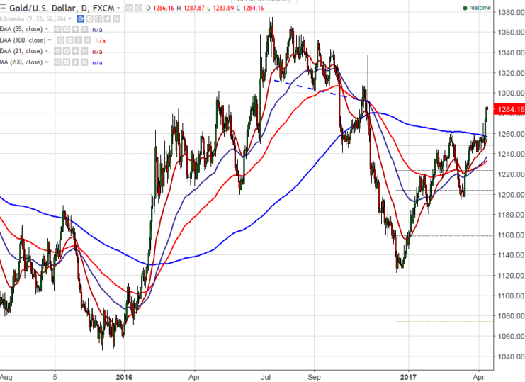 - Gold prices added to recent gains and broken high of $1275 made on Apr 11th 2017 on account of geopolitical tension in Syria and North Korea.