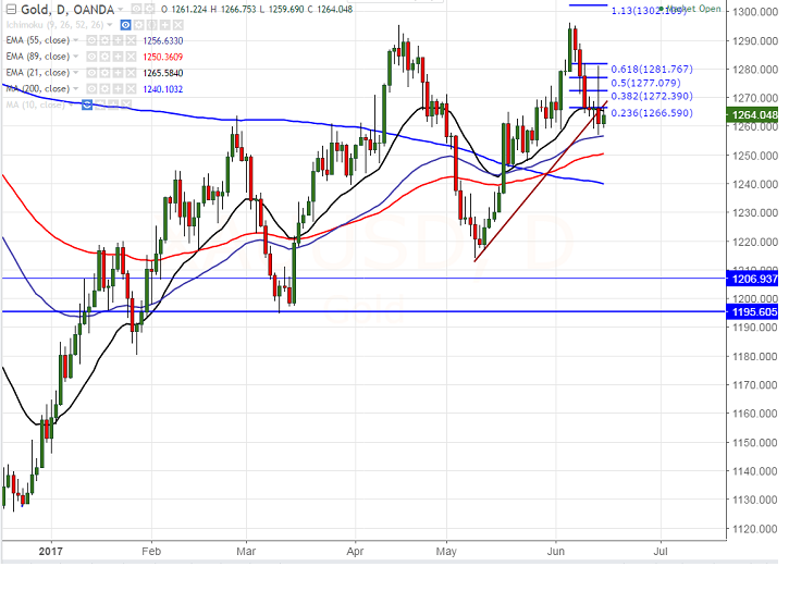 - In the daily chart , gold’s near term support is around $1256 (55-EMA) and break below will drag the commodity down till $1250 (89 day EMA)/$1240 (200- MA).