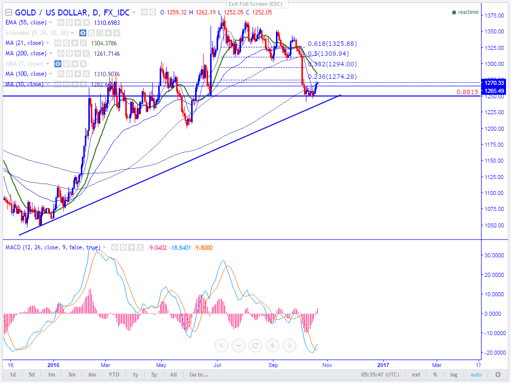 - On the higher side, major resistance is around $1274.28 (23.6% retracement of $1375.15 and $1241) and any violation above that level will take the yellow metal to next level till $1288 (21- day MA)/$1300.