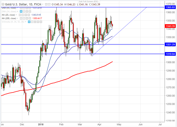 - On the lower side, near term support is around $1339 (20- day MA) and any break below will drag the yellow metal down till $1329 (61.8% fibo)/$1324.
