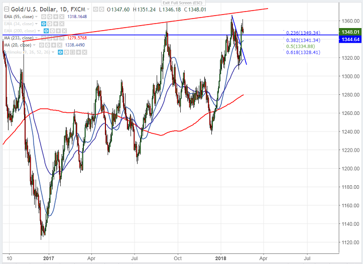 - The near term resistance is around $1357 and any close above will take the commodity till $1360/$1366. Overall bullish continuation only above $1366.