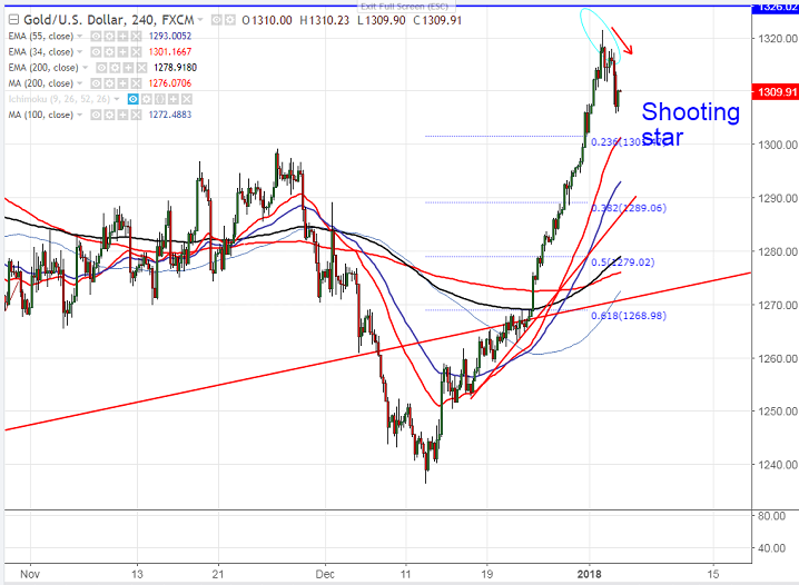 - On the higher side, gold is facing strong resistance at $1321 and any break above will take the yellow metal till $1331/$1339 (161.8% retracement).