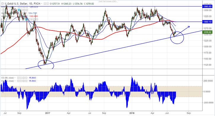 - The near term resistance is around $1266 (20- day MA) and any convincing break above will take the yellow metal till $1270/$1275 (23.6% fib).
