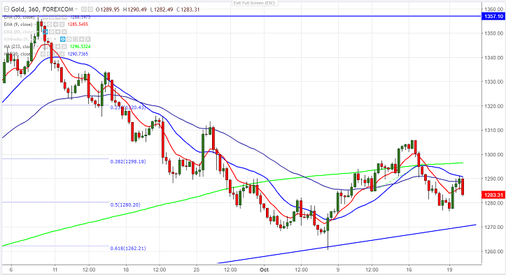 - Technically gold is facing major resistance around $1291(20- 6H MA) and any break above will take the yellow metal till $1296 (233- 6H MA)/$1300/$1309 (50% retracement of $1357 and $1260) /$1313/$1320.