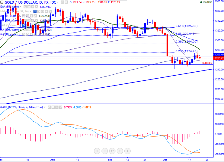 - The support is at $1250 and any violation below will drag the gold till $1226 (161.8% retracement of $1241 and 1264.93)/$1210.