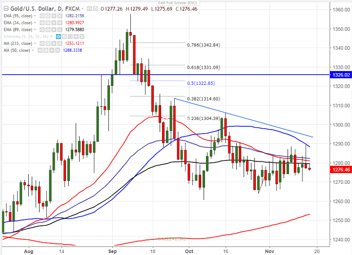 - Technically gold is facing near term resistance around $1291 (Oct 19th 2017 high and 8% fibo) and any break above will take the pair to next level till $1300/$1309. Minor resistance is around $1282.50 (55- day EMA).