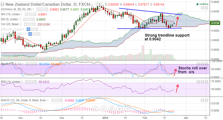 NZD/CAD is extending upside after taking strong trendline support at 0.9042 on Feb 18th trade.