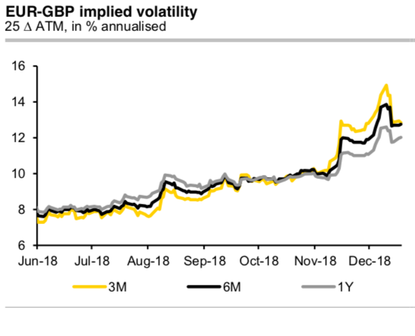 Although the recent fall in GBP volatilities on the options markets (refer above chart) does not really make total sense, a question pops-up in our mind, has the uncertainty concerning Brexit really fallen in the eyes of the market since the vote in the House of Commons was postponed? Of course, it was clear that Prime Minister Theresa May would lose the vote on her withdrawal agreement.
