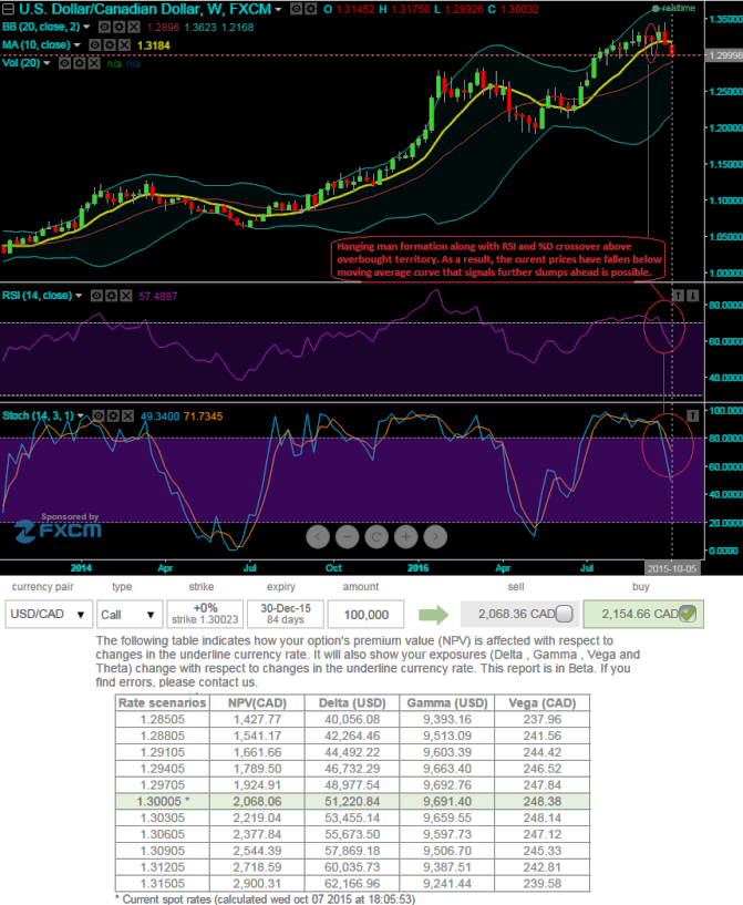 We could foresee the bulls taking halt at this point, this has been confirmed with a hanging man candle formation on weekly chart at 1.3219. Hanging man at peaks of the uptrend is a bearish signal but there has to be further substantiation from leading oscillators which we saw from RSI and stochastic reached overbought zones and there has been divergence to the rising prices.