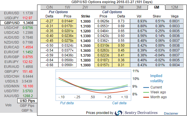 Therefore, the downside risks to the pound will predominate for now. Both the ECB and the Fed are likely to tighten monetary policy before year-end, which is why the pound looks set to lose both against the EUR and the USD. This is also evident if you look into the positively skewed implied volatility of GBPUSD of 6-months tenors that is indicating hedgers' interests in downside risks upto 1.30 levels.