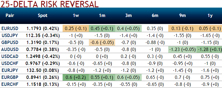 Well, the bearish stance has been substantiated by AUDUSD's rising IV in 1-3m which is an opportunity for put longs in long-term and using shrinking IVs of shorter tenors with bearish neutral delta risk reversal can be interpreted as an opportunity for writing OTM puts or theta shorts in short run on time decay advantage as the spot FX market reckons the price has downside potential for large movement in the days to come which is resulting option holders’ on competitive advantage.