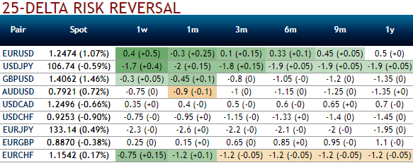 Let’s glance at above nutshell, the positive shift in risks reversals in 1m tenors that indicates the bullish risks in underlying spot FX prices.