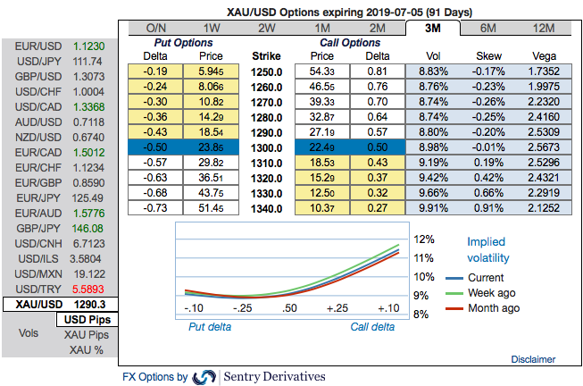 Please be noted that the positively skewed IVs of 3m XAUUSD contracts are still indicating the upside risks. One could see a bullish risk reversal setup. To substantiate the above bullish sentiment, risk reversal (RRs) numbers indicate an overall bullish environment.