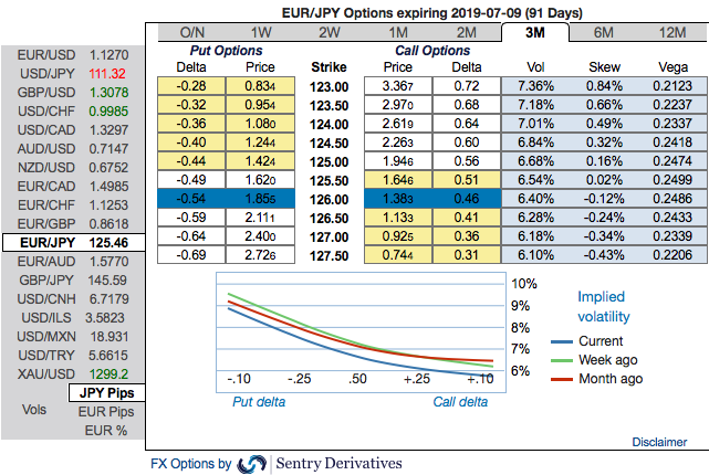 We cannot afford to isolate hedging sentiment with this tool alone, this is evident while observing the 3m positively skewed IVs of EURJPY & EURUSD that are in line with the above-stated bearish scenarios. Skews stretched towards OTM put strikes signifies hedgers interest in the further bearish risks.