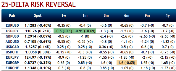 We risk reversals indicating major bearish hedging sentiments remain intact, negative bids are observed in the GBPUSD risk reversals across 1m -1y tenors. While positively skewed implied volatilities of 3m tenors also show hedging interests in bids for OTM puts that signal bearish risks.