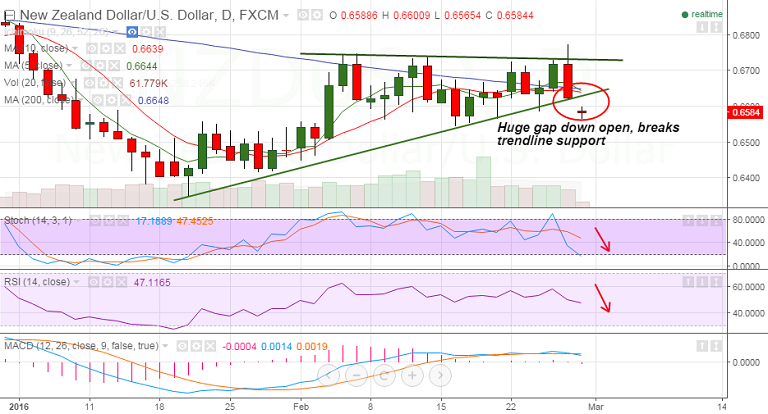 NZD/USD saw a huge bearish gap down open (almost 40-pips) in Asian trade today, sharp decline in the Chinese stocks weighed on the sentiment.