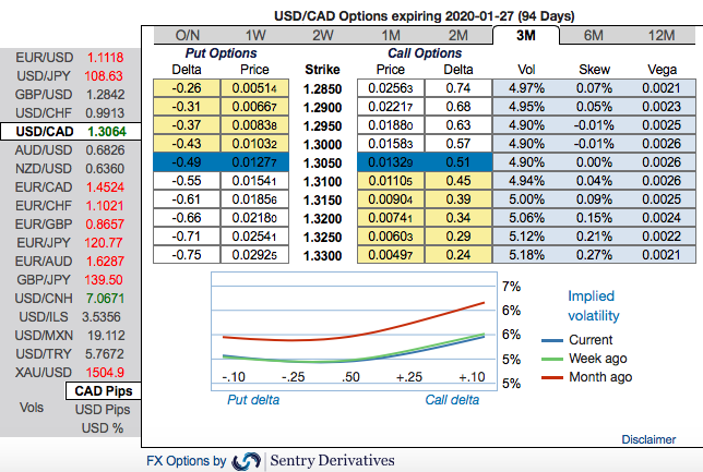 The rationale: Firstly, as you could observe the underlying spot of USDCAD has dipped somewhat in the minor trend below 1.30 level with exhausted bullish sentiments from recent past or so, hedgers’ interests remained intact onto the bullish neutral risk reversals in longer tenors along with shrinking IVs (implied volatilities).