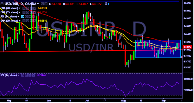 We prefer to take short position in USD/INR around 64.10, stop loss at 64.25 and target of 63.87/63.75.