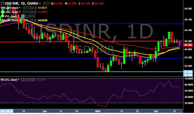 - Key resistances are seen at 64.28, 64.48, 64.62, 64.85 and 65.12 marks respectively.